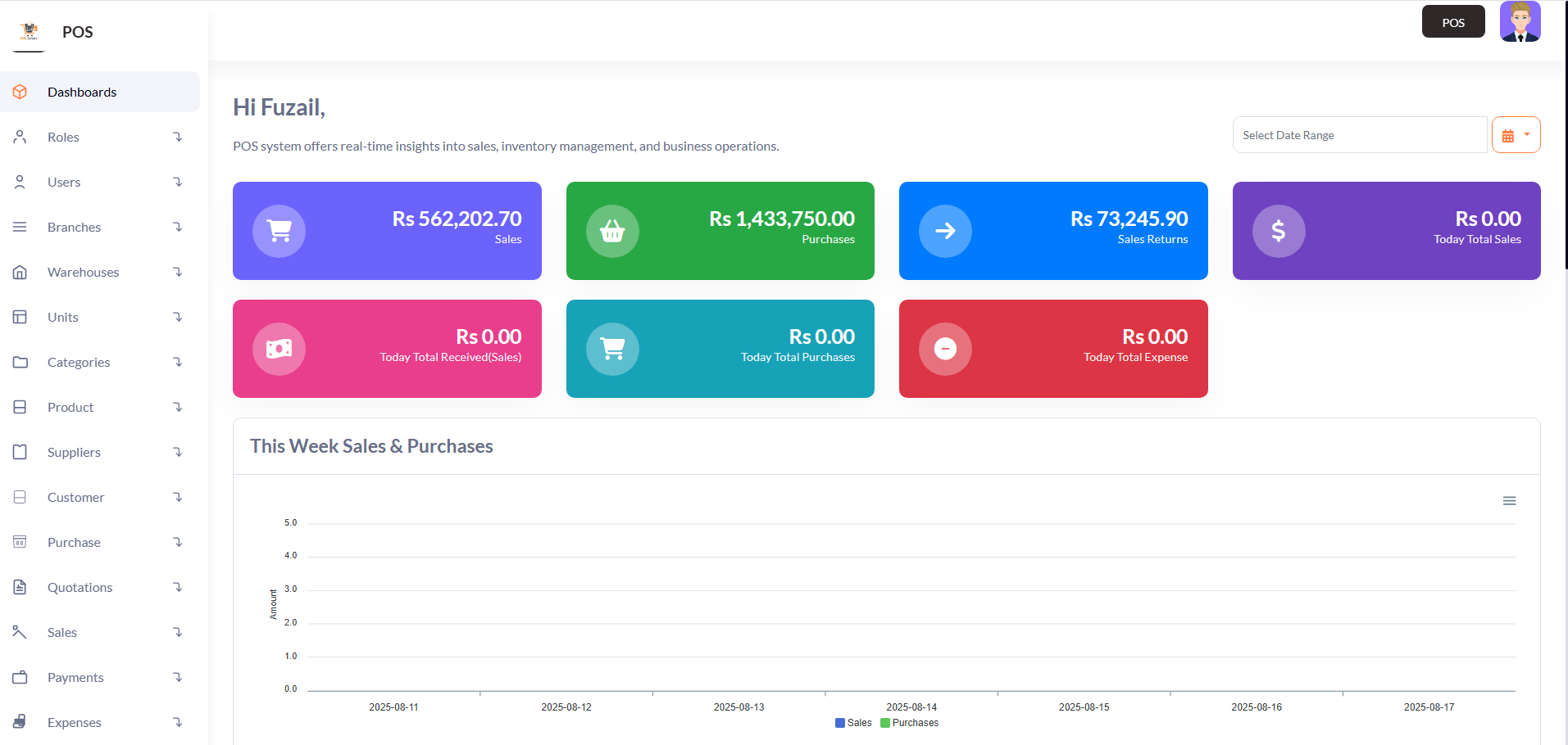 - Role-based access control for Admins, Cashiers, Warehouse Managers, and other custom roles, ensuring task-specific permissions.