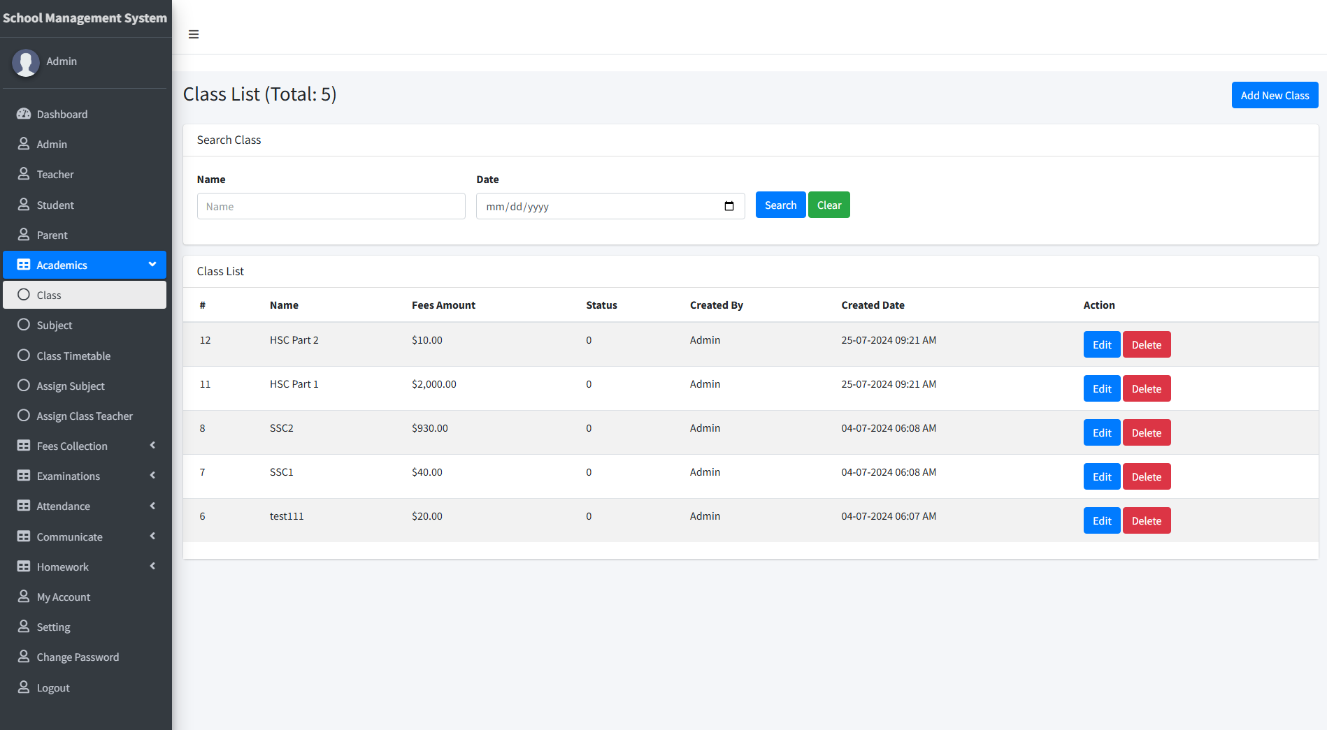 Admins can add, edit, or remove user profiles for Admins, Teachers, Students, and Parents with complete control over account permissions. The academic management tools enable the creation and organization of classes, sections, and subjects, as well as the assignment of teachers to classes and the mapping of subjects to specific grades. This ensures a well-structured academic environment that’s easy to manage.