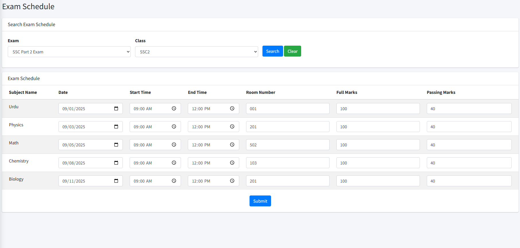 Plan and organize school schedules with ease using our intuitive calendar and timetable tools. Create daily class schedules, allocate time slots for subjects, and publish exam timetables in advance. Teachers and students can view these schedules anytime from their dashboards, and the system sends automatic reminders to help everyone stay on track.